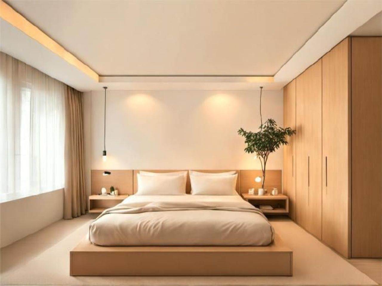 Thiết kế bệt liền tủ đầu giường, mang lại cảm giác thoáng đãng và rộng rãi cho không gian