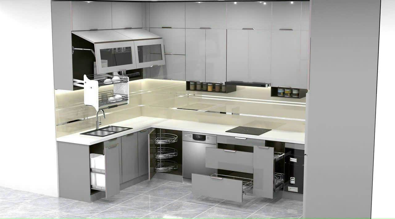 Phụ kiện tủ bếp: Để có một tủ bếp hiện đại và tiện nghi, không thể thiếu các phụ kiện bếp làm từ inox 304, chống han gỉ, chịu lực tốt và bền bỉ. Các phụ kiện này bao gồm giá đựng bát đĩa, xoong nồi, gia vị, giá góc liên hoàn, mâm xoay, và tay nâng tủ bếp.