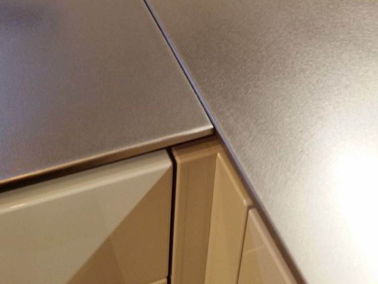 Các cạnh mặt bàn Inox nguyên khối được bo tròn tạo thẩm mỹ và an toàn khi sử dụng