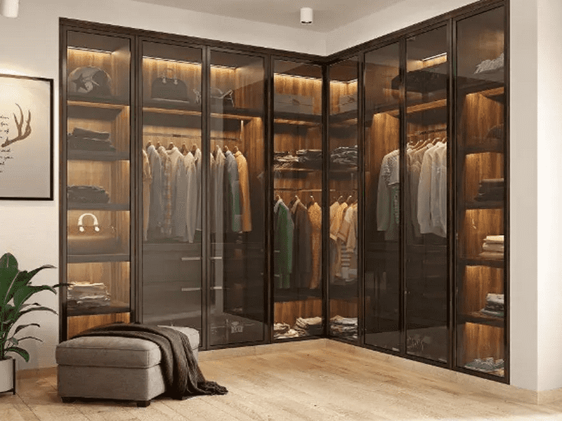 Mẫu tủ áo cánh kính cửa lùa chữ L