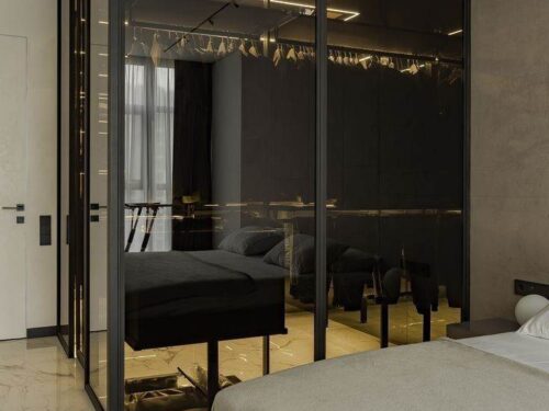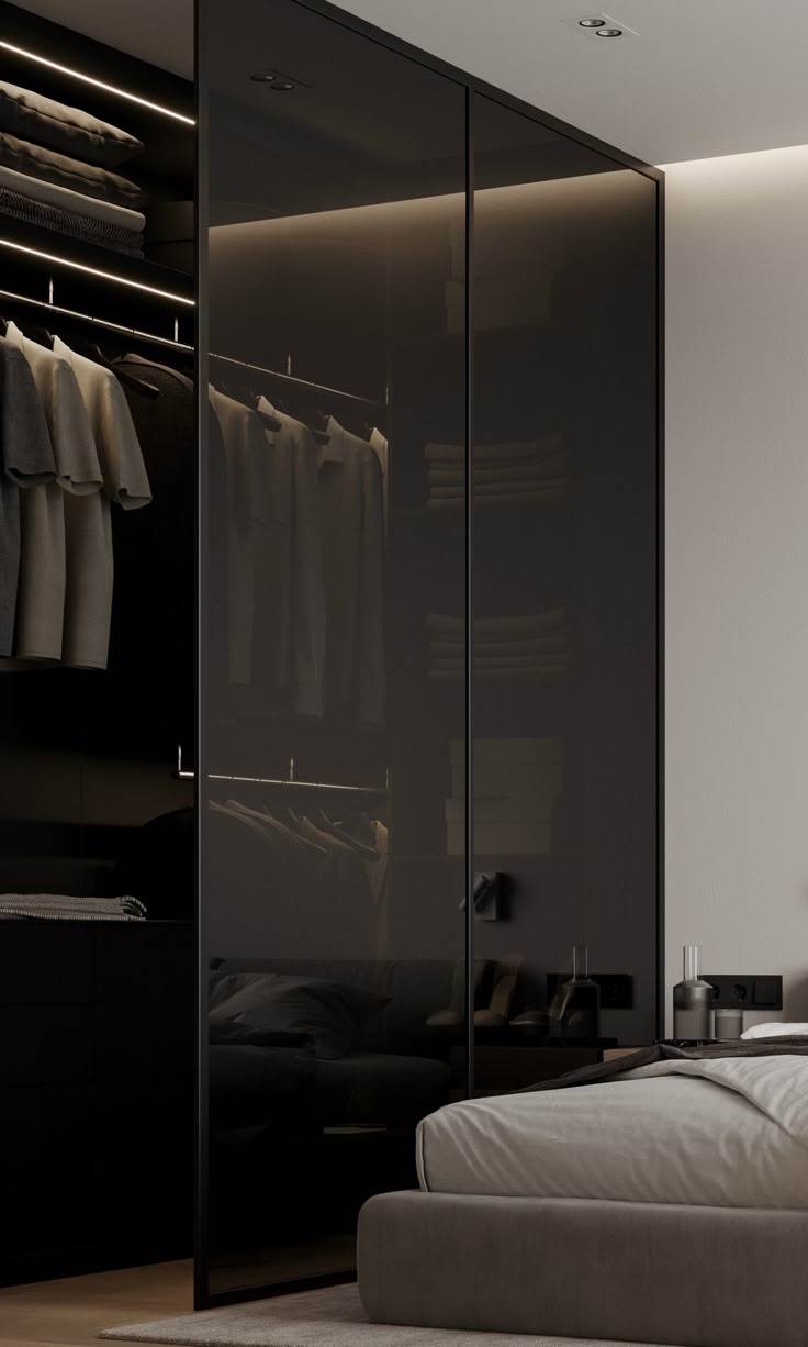 Tủ kính lùa 2 cánh màu đen tinh tế, phù hợp không gian tối giản