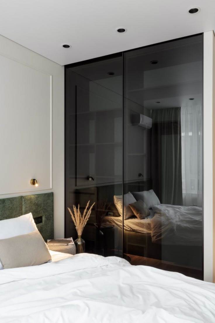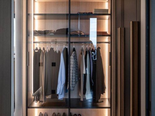 Mẫu tủ kính lùa 2 cánh thiết kế âm tường