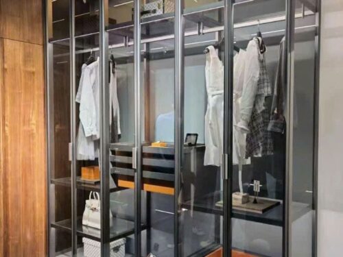 Khung nhôm cánh kính tủ quần áo có sẵn trong nhiều màu sắc khác nhau như đen, vàng đồng, socola xước, inox, và các tùy chọn màu khác. Về chất liệu, khung có thể là nhôm sơn tĩnh điện hoặc inox, tùy thuộc vào sở thích và nhu cầu sử dụng của từng gia đình.