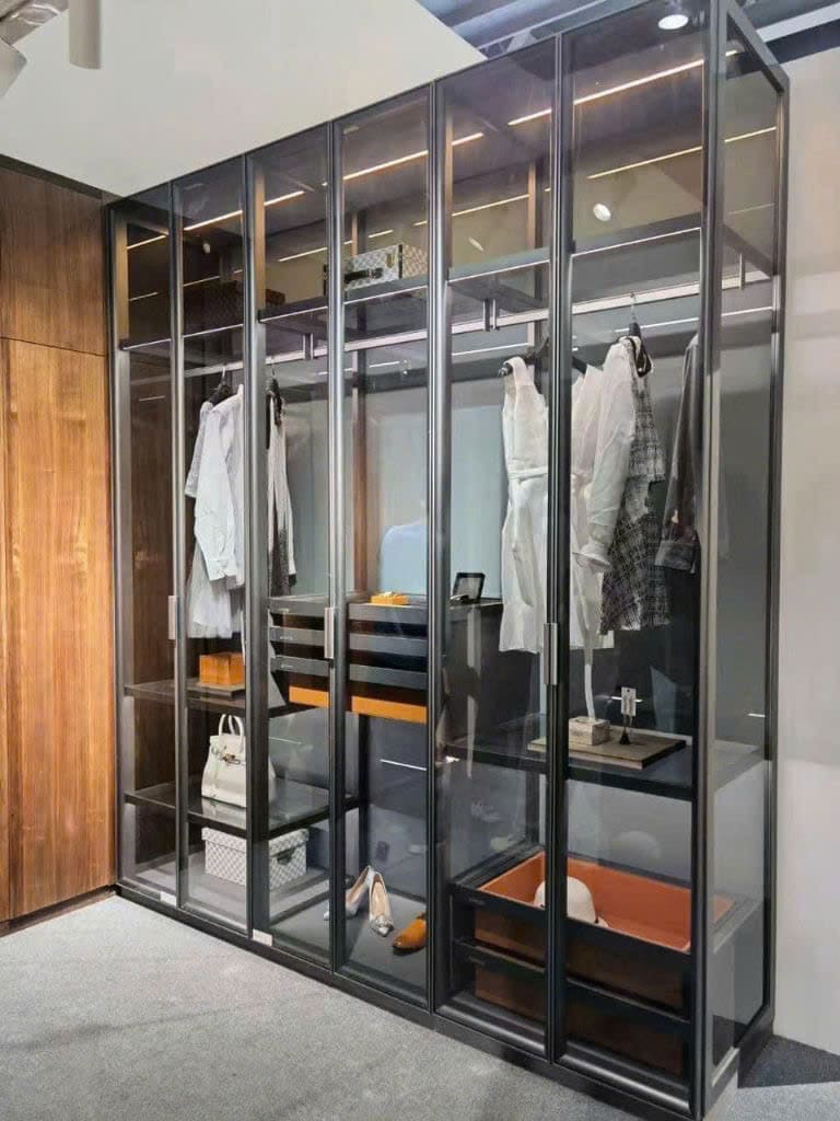 Tuy nhiên tủ quần áo kính là một trong những lựa chọn nội thất cao cấp, đem lại vẻ đẹp hiện đại và sự sang trọng cho không gian phòng ngủ. Thiết kế mới của tủ quần áo này tích hợp các module cánh tủ kính với khung nhôm, tạo nên sự linh hoạt cho người dùng khi sắp xếp không gian.