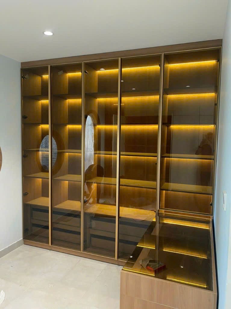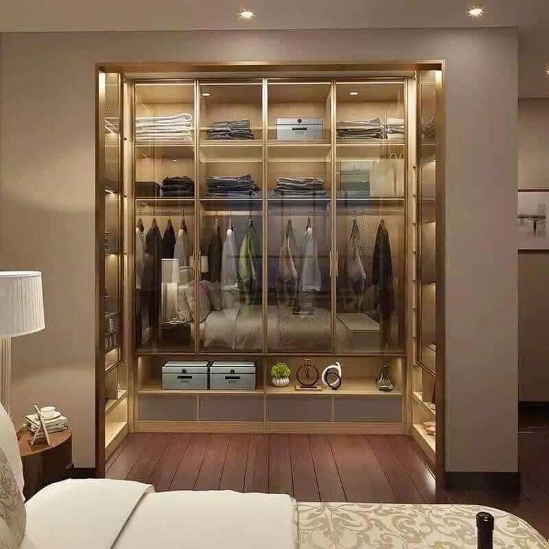 Tủ quần áo cánh kính cho phép trưng bày toàn bộ không gian bên trong một cách tự nhiên và ấn tượng, tạo điểm nhấn thẩm mỹ hiện đại và sang trọng cho phòng ngủ. Việc sử dụng cánh kính tủ quần áo giúp người dùng dễ dàng tìm kiếm trang phục và phụ kiện một cách thuận tiện. Đồng thời, ánh sáng chiếu vào làm cho quần áo bên trong trở nên lung linh hơn. Với đa dạng về kiểu dáng và màu sắc, tủ áo cánh kính phù hợp với mọi phong cách trang trí nội thất, từ hiện đại đến truyền thống.