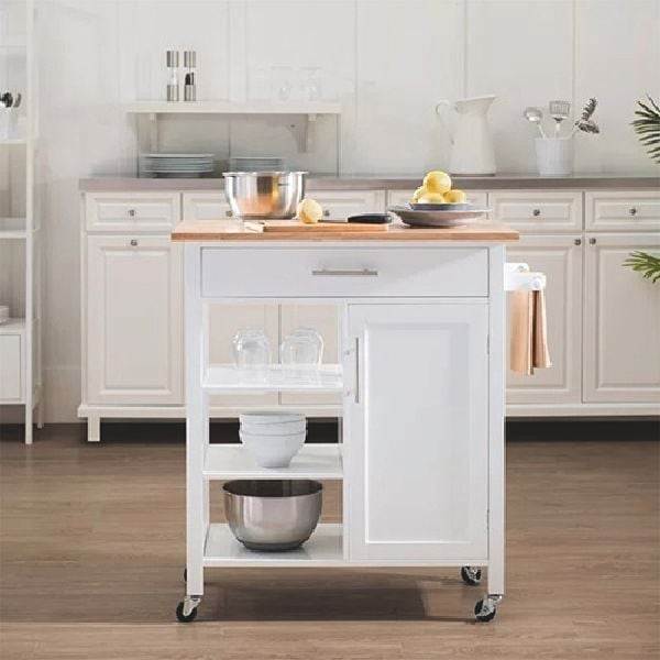 Với bề mặt được thiết kế rộng rãi và chắc chắn, tủ bếp di động có thể sử dụng như một bàn chế biến thực phẩm. Đây là nơi lý tưởng để bạn cắt thái, chuẩn bị nguyên liệu hoặc trưng bày các món ăn khi cần thiết. Một số mẫu còn được tích hợp ngăn kéo hoặc khay đựng dao kéo, giúp việc chế biến trở nên tiện lợi hơn.
