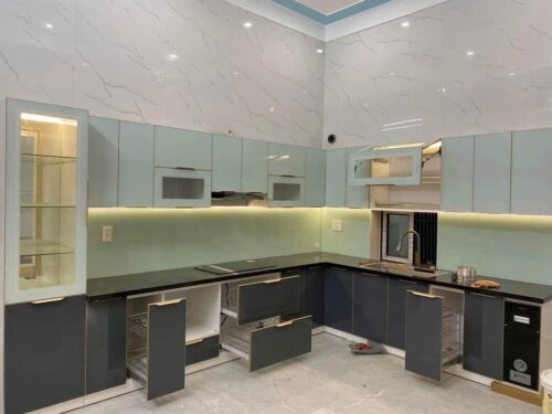 Mẫu tủ bếp hợp kim nhôm cao cấp chữ L