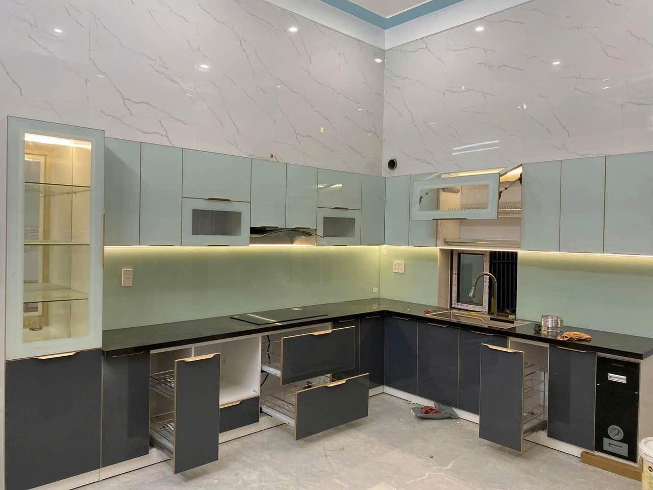 Mẫu tủ bếp hợp kim nhôm cao cấp hiện đại, sang trọng