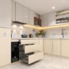 Ngoài khung Inox và cánh tủ Laminate, tủ bếp Inox cánh Laminate còn được trang bị các phụ kiện như bản lề Inox, ray trượt chất lượng cao, tay nắm tủ, và các ngăn kéo tiện ích. Những phụ kiện này đều được chọn lọc kỹ càng để đảm bảo sự bền bỉ và dễ dàng sử dụng.