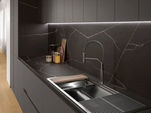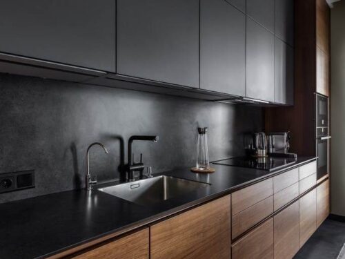 Mẫu tủ bếp Laminate màu đen sang trọng