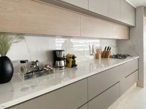 Sự kết hợp giữa khung Inox bền bỉ và cánh Laminate đa dạng về thẩm mỹ giúp tủ bếp không chỉ bền vững mà còn đáp ứng nhu cầu thẩm mỹ, tiện nghi cho không gian bếp hiện đại.