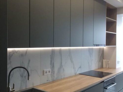 Bề mặt Laminate mang đến nhiều tùy chọn màu sắc và hoa văn đa dạng, từ vân gỗ sang trọng đến các thiết kế hiện đại như vân đá, vân vải hay đơn sắc. Chất liệu này có khả năng chống trầy xước, chịu lực tốt và dễ vệ sinh, giúp tủ bếp luôn bền đẹp theo thời gian.