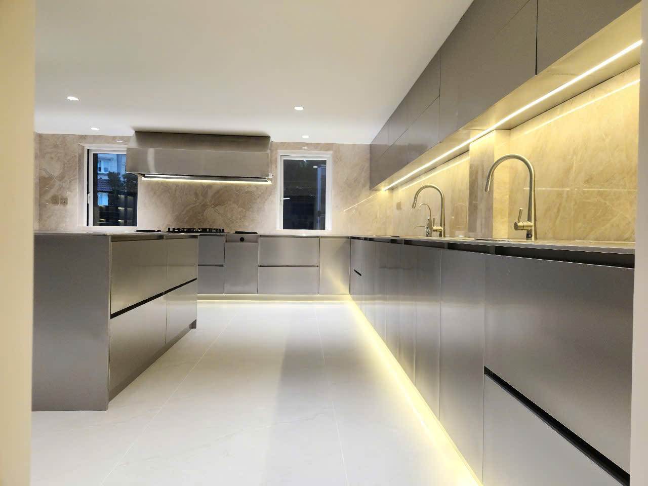 Mẫu tủ bếp Inox cao cấp thiết kế hiện đại