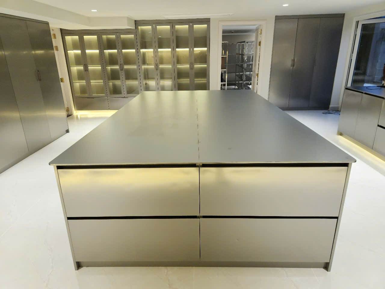 Mẫu tủ bếp Inox cao cấp màu xám