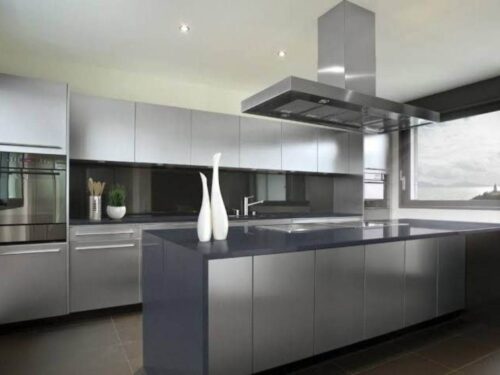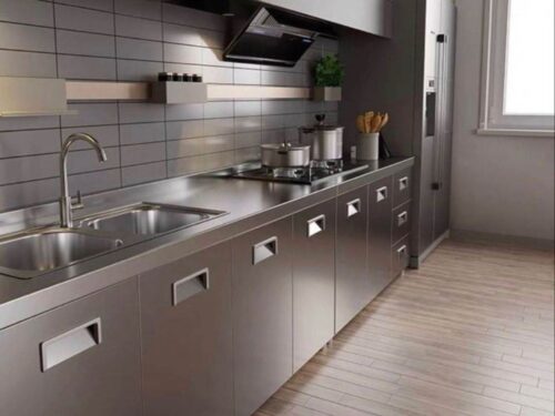 Cánh tủ bếp inox: Có thể kết hợp với nhiều chất liệu khác như kính cường lực, acrylic, laminate hoặc gỗ tự nhiên, giúp tăng tính thẩm mỹ và phù hợp với nhiều phong cách nội thất.