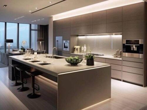 Mặt bàn bếp: Sử dụng đá tự nhiên hoặc đá nhân tạo, có khả năng chịu lực, chống trầy xước và dễ dàng vệ sinh.