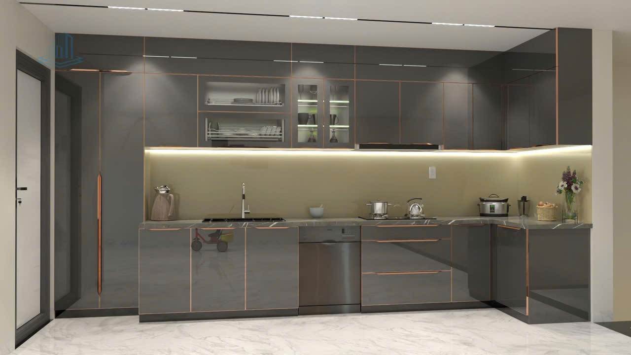 Cánh nhôm được thiết kế đa dạng về màu sắc và kiểu dáng, từ tối giản đến hiện đại, dễ dàng hài hòa với mọi không gian bếp. Bề mặt có thể được phủ sơn tĩnh điện hoặc laminate, giúp tăng độ bền, tạo vẻ bóng đẹp và sang trọng. Khi kết hợp cùng kính cường lực, tủ bếp khung inox cánh nhôm không chỉ bền chắc mà còn toát lên nét tinh tế, hiện đại, mang đến không gian bếp sang trọng và tiện nghi.