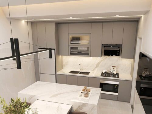 Với lớp phủ Melamine, tủ bếp nhôm không chỉ có độ bền cao mà còn sở hữu nhiều kiểu dáng, màu sắc và họa tiết vân gỗ đẹp mắt. Người dùng có thể chọn tông màu sáng để tạo cảm giác rộng rãi hoặc chọn vân gỗ tự nhiên để tăng thêm sự ấm cúng cho căn bếp. Nhờ vậy, tủ bếp nhôm cánh Melamine có thể phù hợp với nhiều phong cách nội thất, từ tối giản, hiện đại đến sang trọng.
