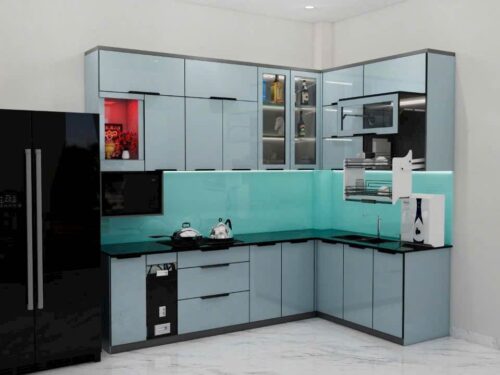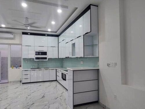 Mẫu tủ bếp nhôm hợp kim lá ghép chữ U