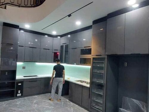 Thiết kế, thi công tủ bếp nhôm lá ghép tối ưu diện tích