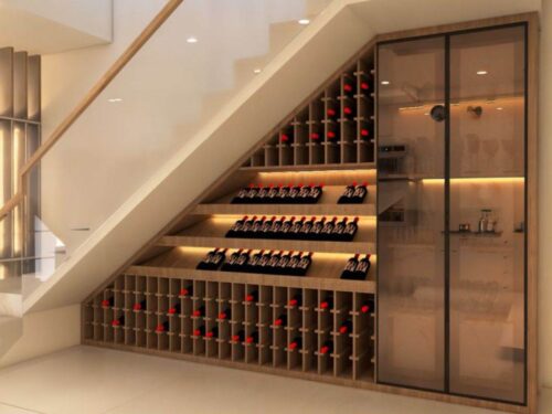 Với những gia đình yêu thích sưu tập rượu, tủ rượu gỗ công nghiệp gầm cầu thang là một sự lựa chọn tuyệt vời. Tủ rượu không chỉ giúp bạn bảo quản các chai rượu một cách an toàn mà còn là món đồ trang trí sang trọng, thu hút sự chú ý của khách khi đến thăm. Tủ rượu có thể thiết kế với các kệ mở hoặc kệ kín để lưu trữ rượu một cách gọn gàng và dễ dàng sử dụng.
