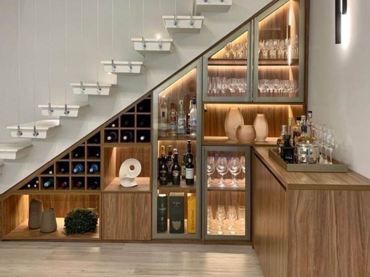 Tủ cầu thang kết hợp tủ rượu đẹp