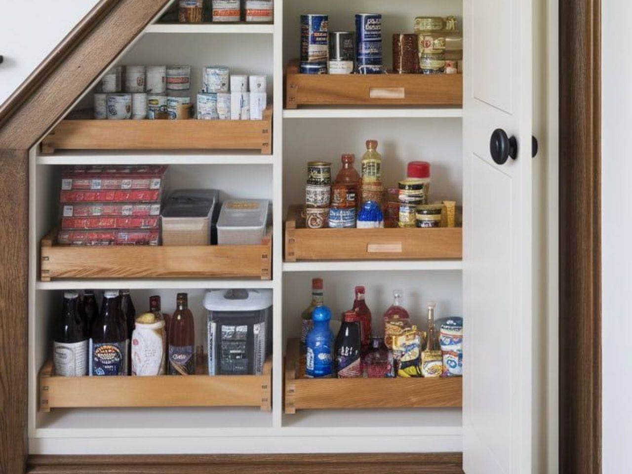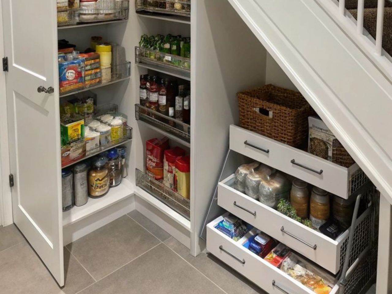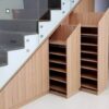 Tủ cầu thang thiết kế dạng kéo là lựa chọn tiện lợi cho việc sắp xếp và phân loại giày dép, vật dụng cá nhân. Các ngăn kéo được bố trí linh hoạt, giúp tận dụng tối đa khoảng trống dưới gầm cầu thang mà không gây rối mắt. Kiểu tủ này đặc biệt phù hợp với không gian nhỏ, vừa gọn gàng vừa dễ sử dụng. Chỉ cần kéo nhẹ là bạn có thể lấy đồ nhanh chóng mà không ảnh hưởng đến các khu vực xung quanh.