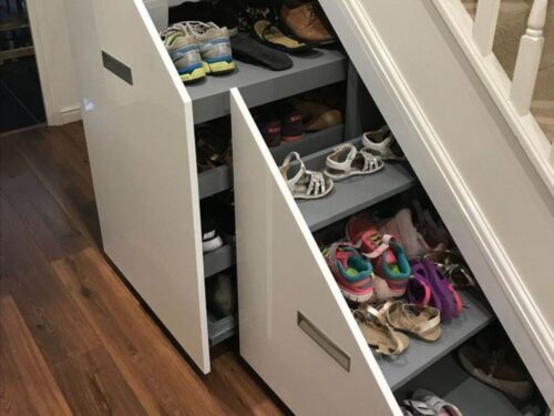 Tủ giày: Tủ gầm cầu thang bằng nhựa là giải pháp lý tưởng để lưu trữ giày dép. Với nhiều ngăn chứa, bạn có thể phân loại giày dép một cách khoa học và tiết kiệm không gian.