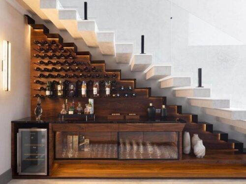 Tủ rượu chân cầu thang không chỉ là một món đồ lưu trữ mà còn là một điểm nhấn trong không gian sống. Những tủ rượu được thiết kế thông minh, hiện đại với cửa kính trong suốt, hệ thống đèn LED chiếu sáng sẽ làm nổi bật bộ sưu tập rượu của bạn, tạo ra một không gian sang trọng và ấn tượng cho ngôi nhà.