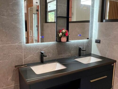 • Tạo cảm giác hiện đại, thường đi kèm với chậu lavabo được lắp vào mặt bàn.