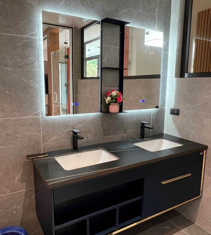 Ngoài ra phần tủ lavabo còn tăng tính thẩm mỹ cho cả căn phòng. Nó được thiết kế tùy vào kích thước từng phòng vệ sinh cụ thể.