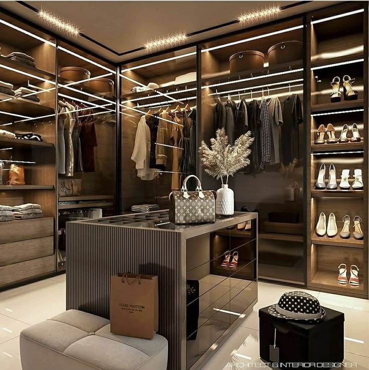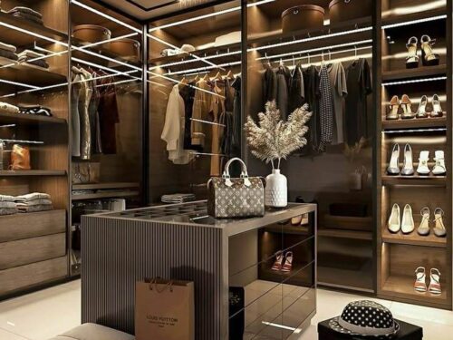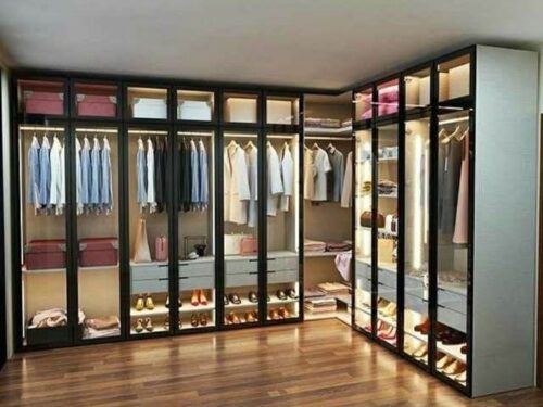 Mẫu tủ quần áo khung Inox kết hợp đèn LED