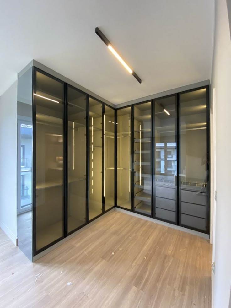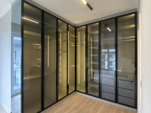 Mẫu tủ quần áo Inox cánh kính góc chữ L