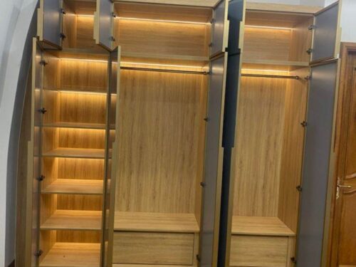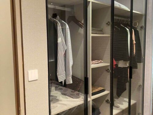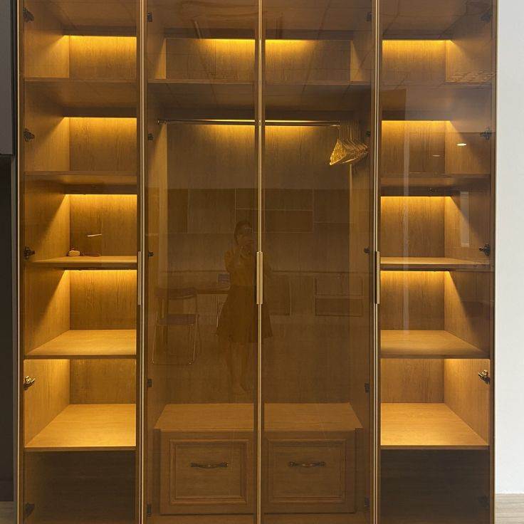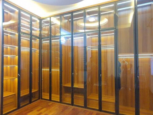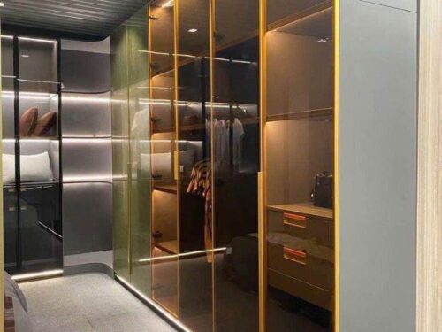 Chọn chất liệu cánh tủ: Bạn có thể lựa chọn cánh tủ làm từ nhôm nguyên khối, kính cường lực hay gỗ công nghiệp tùy theo sở thích và phong cách nội thất của mình. Cánh kính cường lực tạo cảm giác sang trọng, trong khi cánh gỗ mang lại vẻ ấm cúng và tự nhiên.