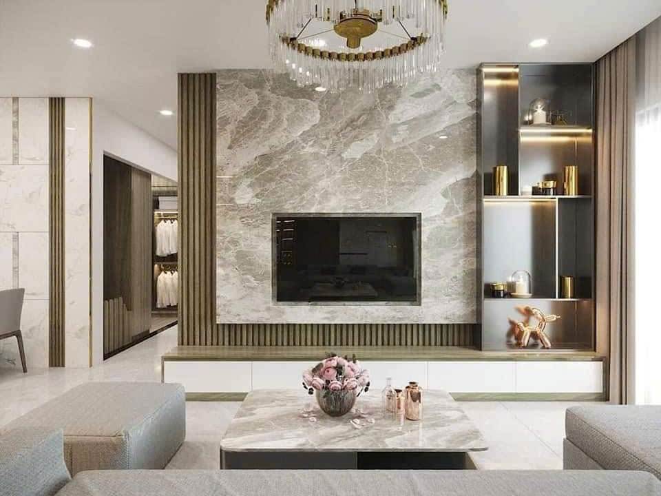 Với bề mặt vân đá sắc nét, đa dạng màu sắc, vách tivi PVC mang lại vẻ đẹp sang trọng, hiện đại cho không gian. Các mẫu vân đá của sản phẩm có thể dễ dàng kết hợp với nhiều phong cách nội thất từ cổ điển đến hiện đại, tạo điểm nhấn ấn tượng cho phòng khách, phòng ngủ hay bất kỳ không gian nào trong nhà.
