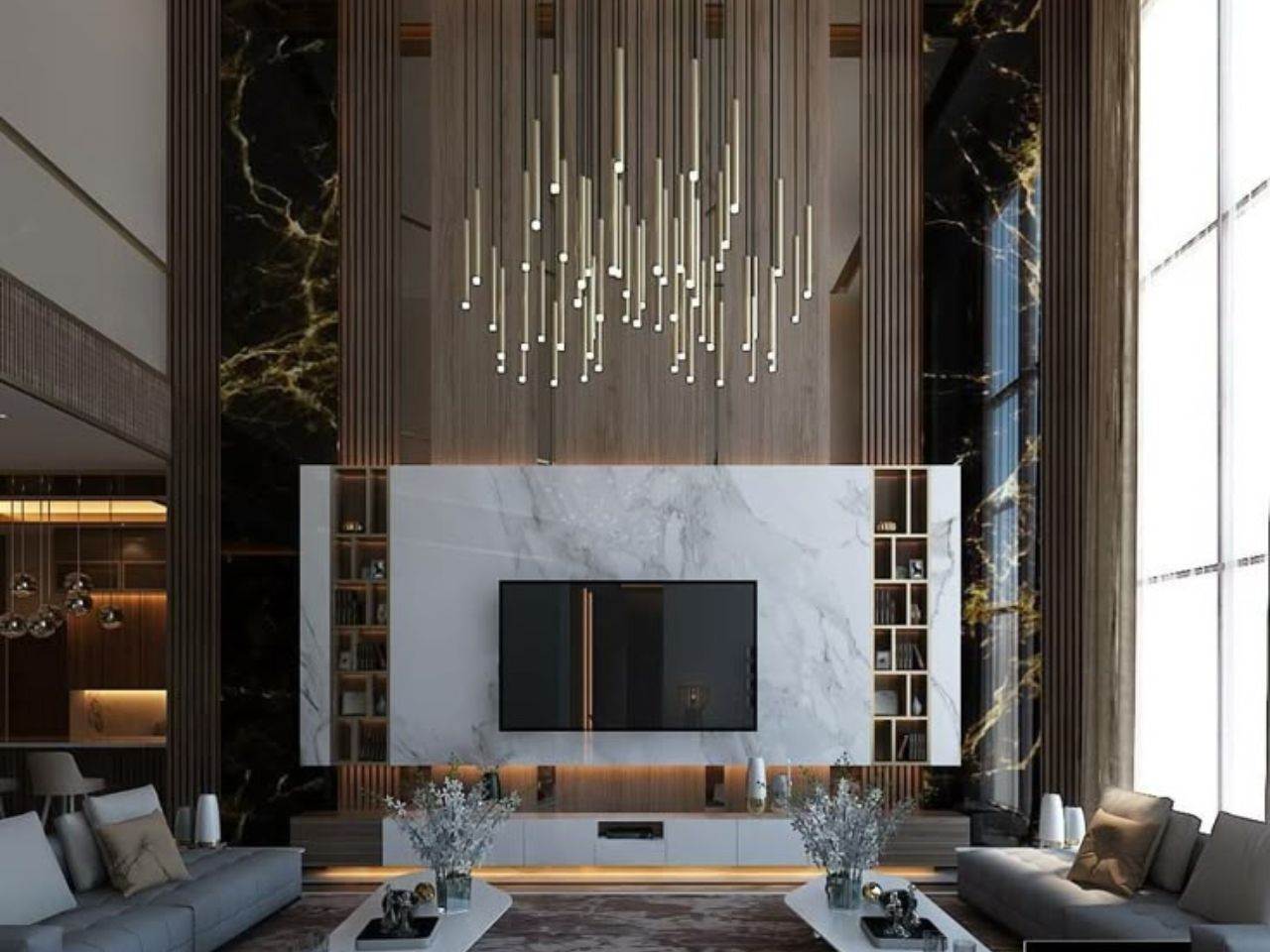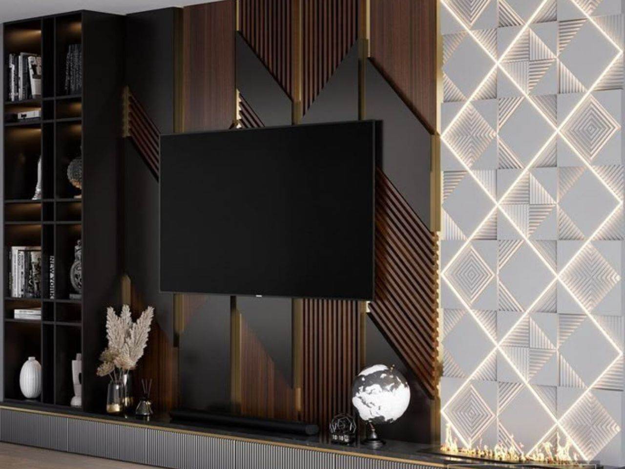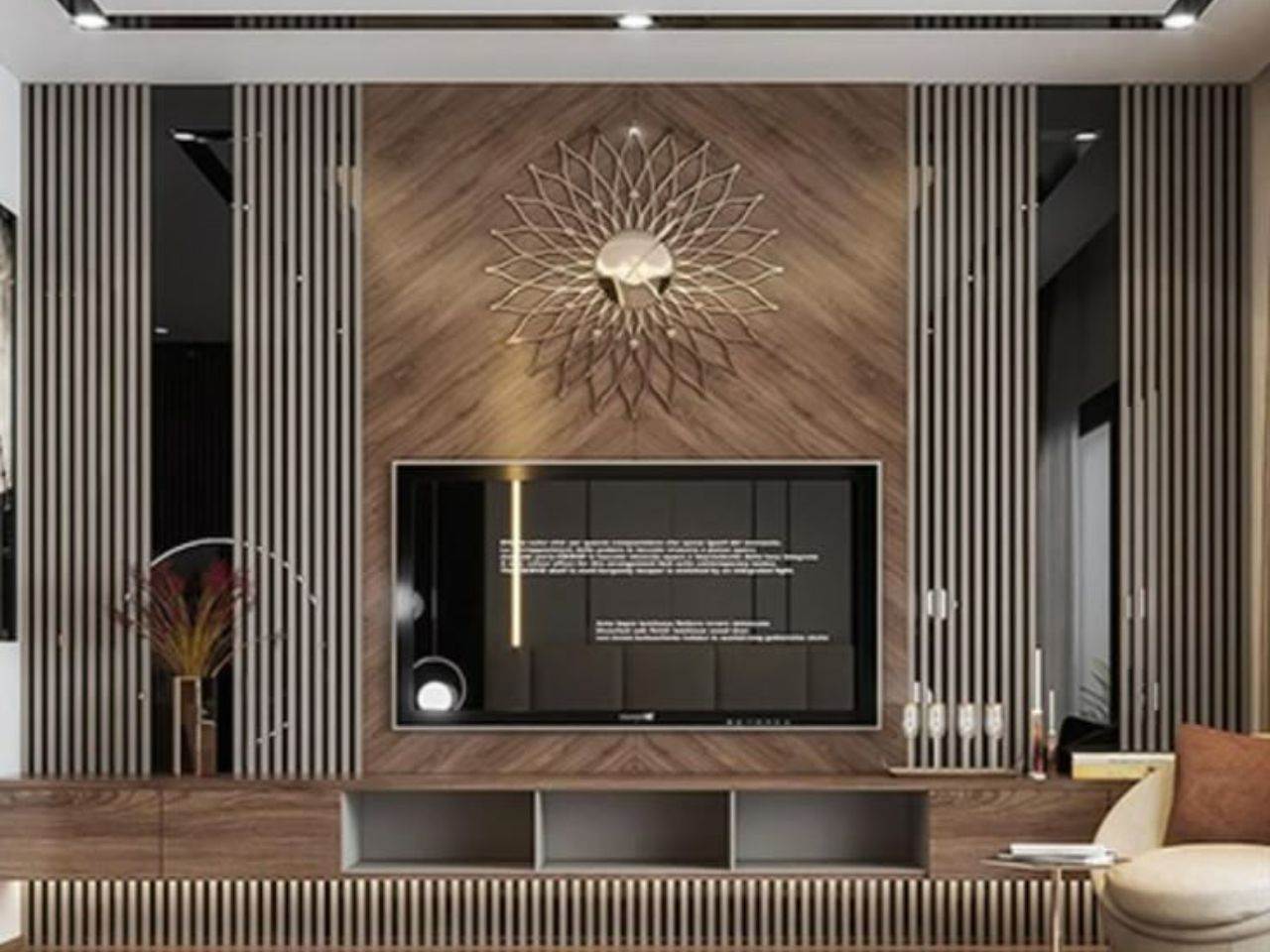 Kích thước vách tivi cần phải phù hợp với diện tích phòng. Nếu phòng nhỏ, chọn mẫu vách tivi nhỏ gọn, không quá cồng kềnh. Còn nếu phòng rộng, vách tivi lớn sẽ giúp tạo điểm nhấn và cân bằng không gian.